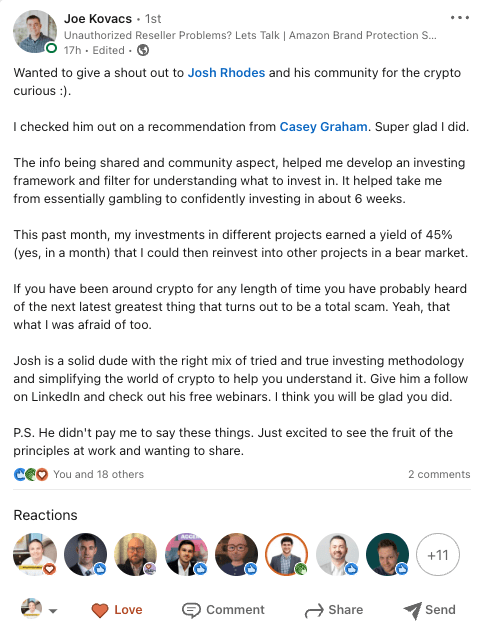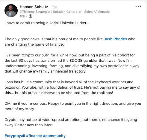 As long as you use the Crypto Flywheel™ as a basic framework, and you understand what the crypto does, your chances of being successful are way higher.